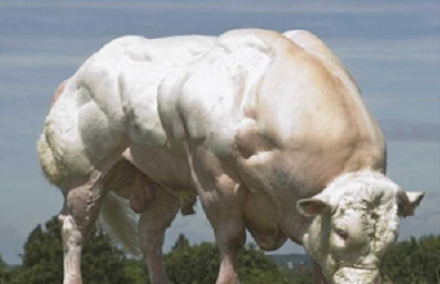人類需要鍛煉才能增加肌肉,但比利時藍牛的肌肉是自身肌纖維增長后發展而來的,即使每天躺著吃也能長肌肉。